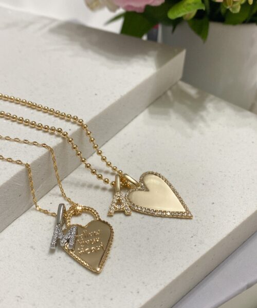 PINGENTE CORAÇAO LONGO LISO CRAVEJADO EM VOLTA DOURADO